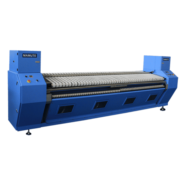 A saída do lençol é ajustável para adaptar a qualquer calandra de alta produção, não necessariamente as calandras da Mamute.